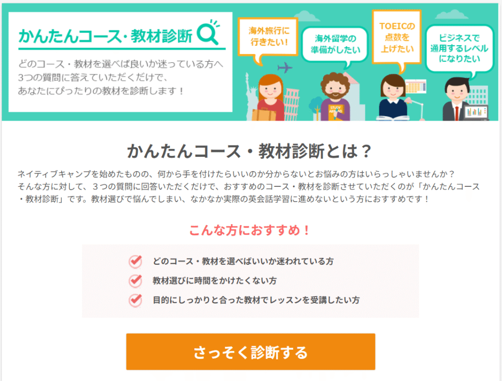 ネイティブキャンプ かんたんコース・教材診断サービス