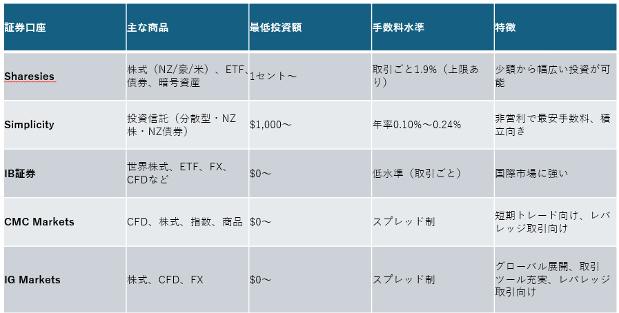NZの主要証券口座比較表